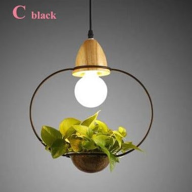 Pendant Light Green Plant Wrought Iron Circle Glass Bowl Pendant Lights