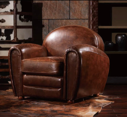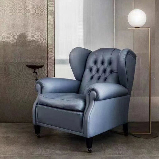 Wingback Chair First Layer Leather Chesterfield Cigar Chair, Luxury Minimalist Modern Armchair