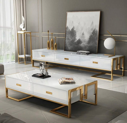 TV Lowboards High Quality Living Room TV Stand Set Black Gold Fernsehtisch Sets