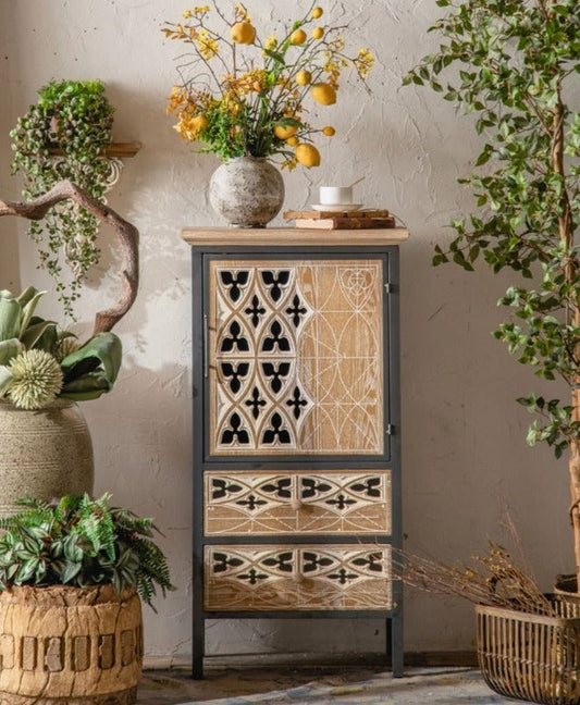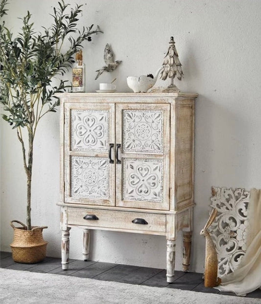 Vintage Furniture Cabinets Country Style Carved Hollow Accent Enzo Cabinet