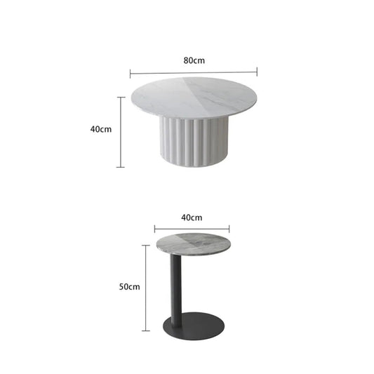 Modern Marble & Iron Tea Table - Round Minimalist End Accent Table