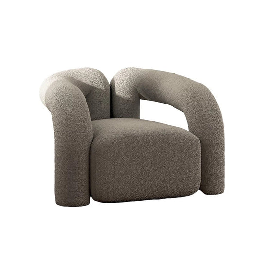 Modern Style Boucle Leisure Armchair, Genuine Leather & Fabric Accent Chair