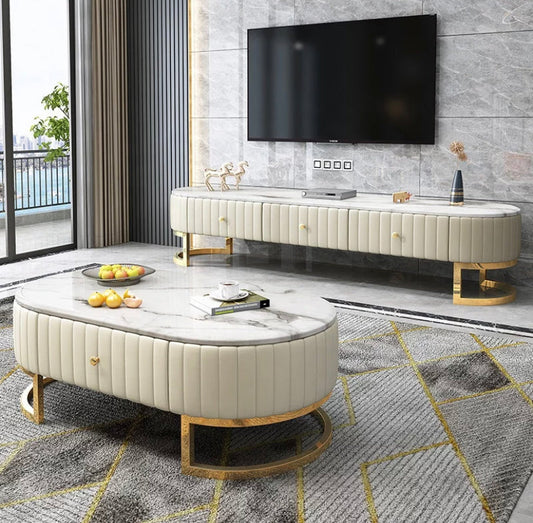 TV Lowboards Sets Nordic Style Marble Fernsehtisch White And Gold TV Cabinet Set