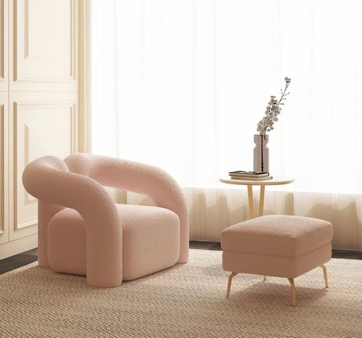 - Keywords: Nordic accent chair, pink wool armchair, modern adjustable chair, luxury living room furniture, minimalist armchair