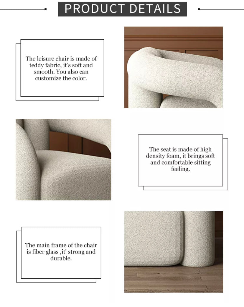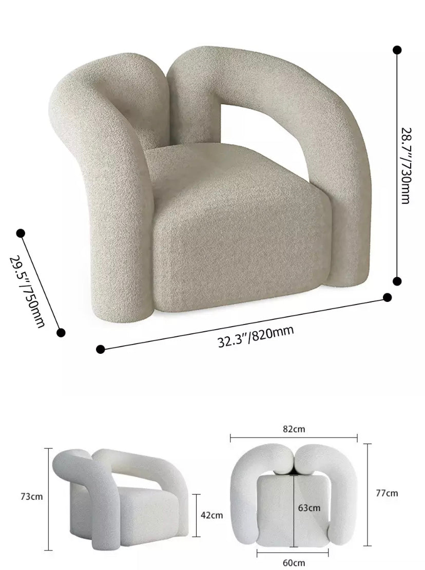 - Description: Modern adjustable armchair with lamb wool fabric upholstery, designed for stylish comfort without rocking functionality