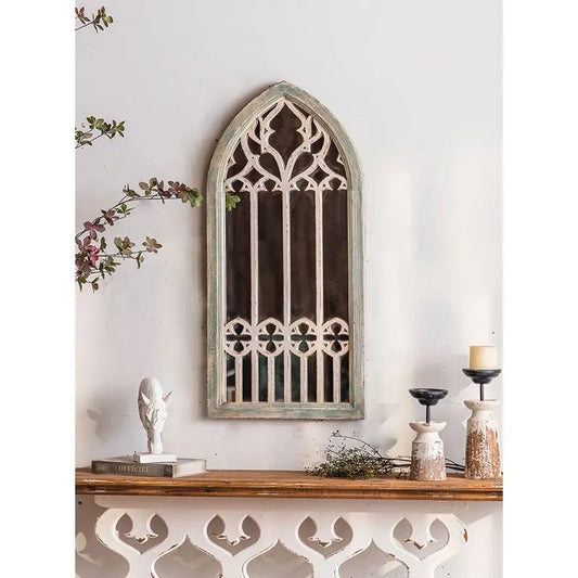 Antique Arch Shape Hanging Wall Mirror Farmhouse Garden Decorative Wood Framed Wall Mirrors