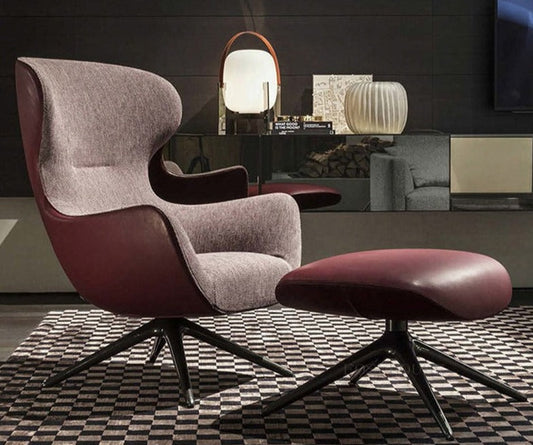 Nordic Wingback Chair with Foot Stool - Leather, Customizable