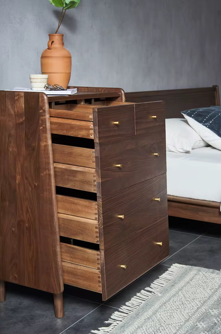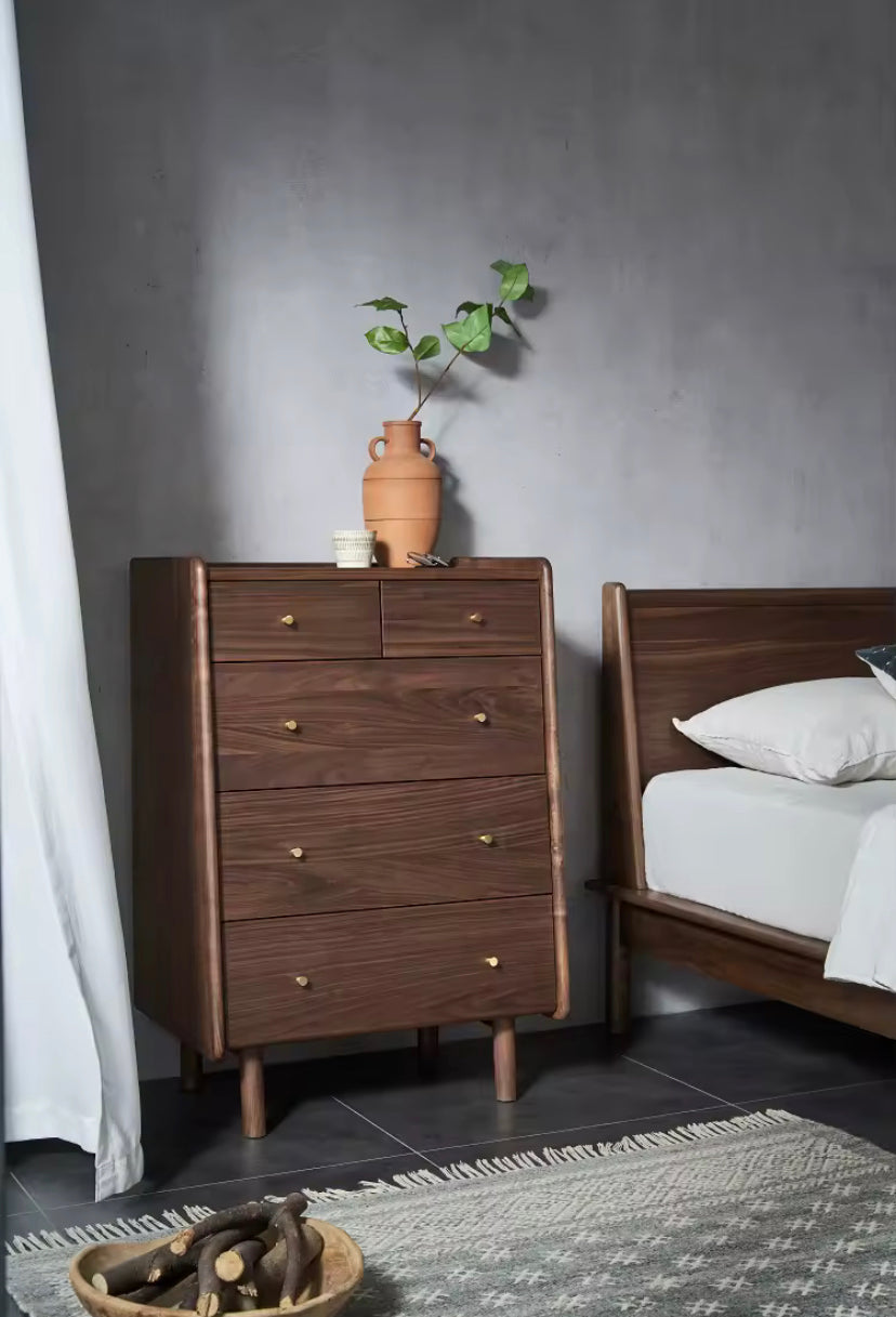 Nordic American Design Solid Black Walnut Wood Cabinet Large Bedroom Chest of Drawers Bedroom Furniture Set