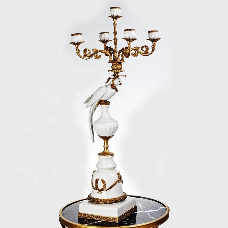 This Hand Made Candelabra is a perfect blend of antique ceramic copper & porcelain decorating candleholder. It is uniquely assembled in Germany and made of premium materials like brass and ceramic. The fashionable style comes in a beautiful white and bronze color, perfect for interior decoration. Its small size makes it great for home or office, with a size of 280*280*820MM and a gloss weight of 7.2KG. Buy the Art Dynasty Candle Holder today and enjoy quick delivery within 15-20 days.