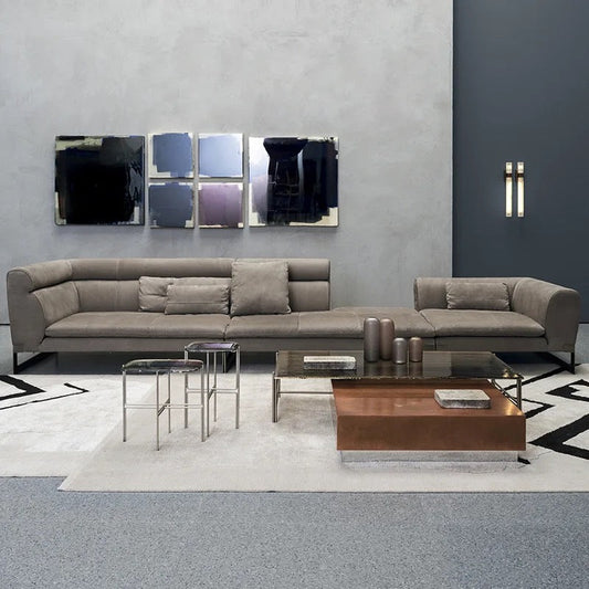 L-Shaped Sofas Modern Luxury Design Soft Circular Grey Leather Sofa Living Room Furniture