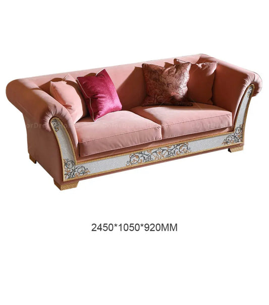 Living Room 3 Seater Sofa Luxury Modern Solid Wood Pink Velvet Baroque Design Salon Sofas Home Furniture