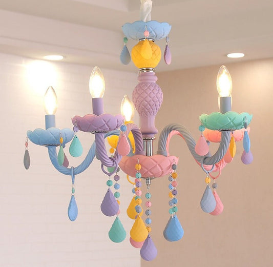 Children's Room Lighting Modern Rainbow LED Crystal European Lustres Kids Makaron Room Lights