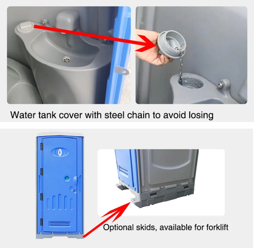 Japanese style portable Toilet optional skids,available for forklift.Toilet seat in the middle,more comfortable and roto-molding waste tank, strong and durable