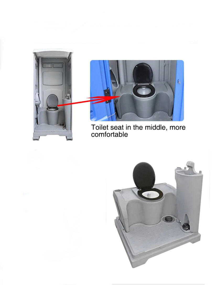 Ready to ship portable toilet is light in weight and compact in size : 1050*1000*2300mm