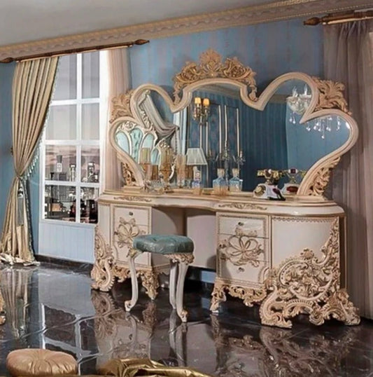 Luxury Baroque Hand-Carved Makeup Vanities with Mirror and Drawers, Master Bedroom Vanity Set