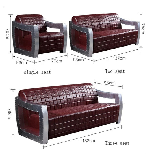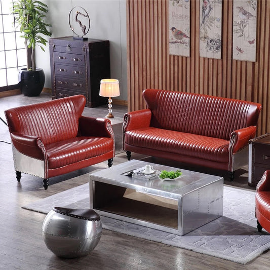 3+2+1 Sofa Set Vintage Classic Red Leather Chesterfield Sofa Aluminum Aviator Design Living Room Furniture